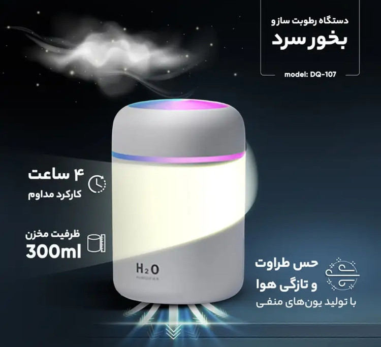 ویژگی خاص: نور LED رنگی ۷ رنگ، قابل حمل، بیصدا